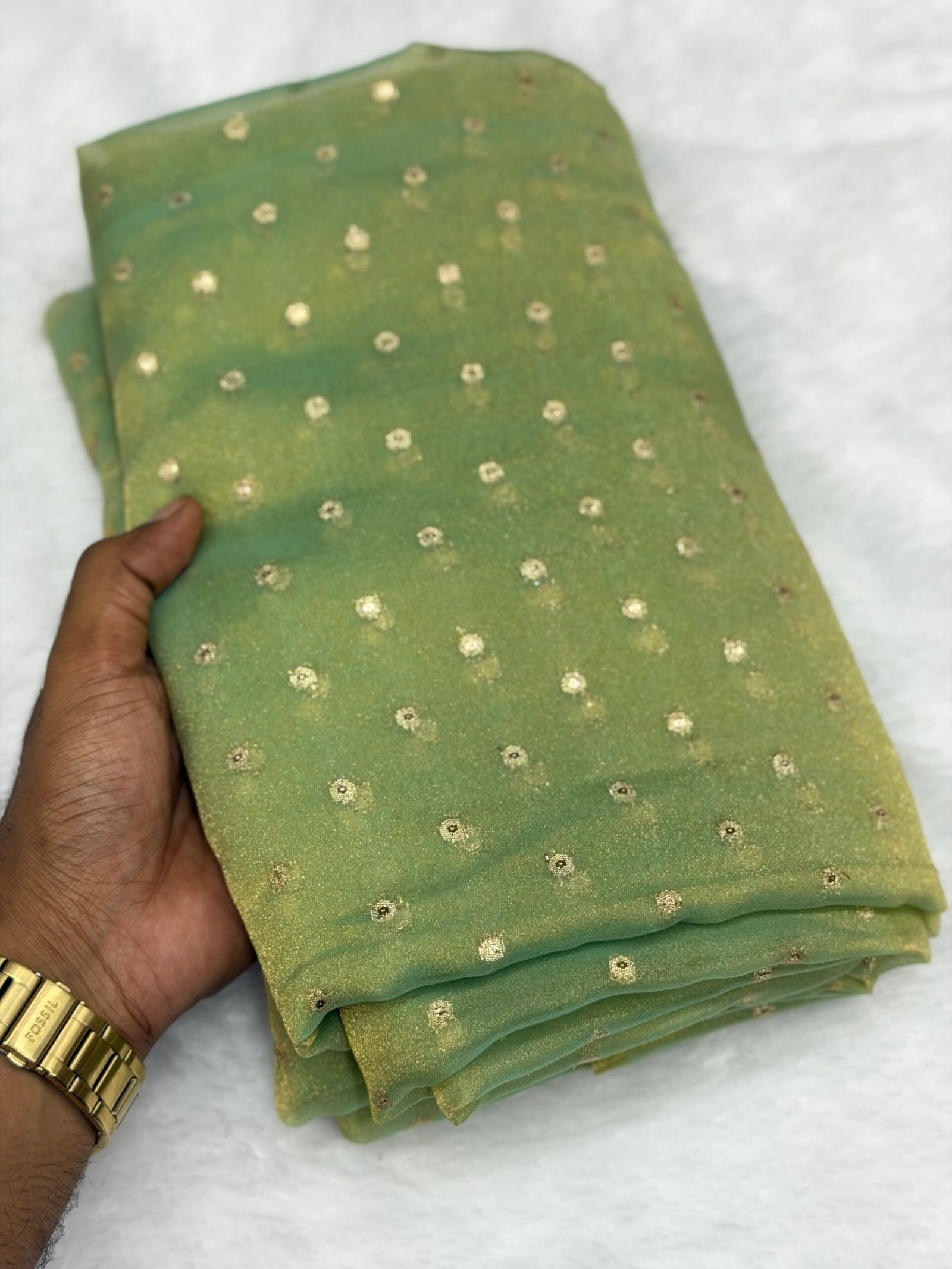 With a generous length of 5.5 meters and width of 44 inches, it offers ample fabric for beautiful draping and versatile styling—perfect for casual outings, festive gatherings, or boutique creations.