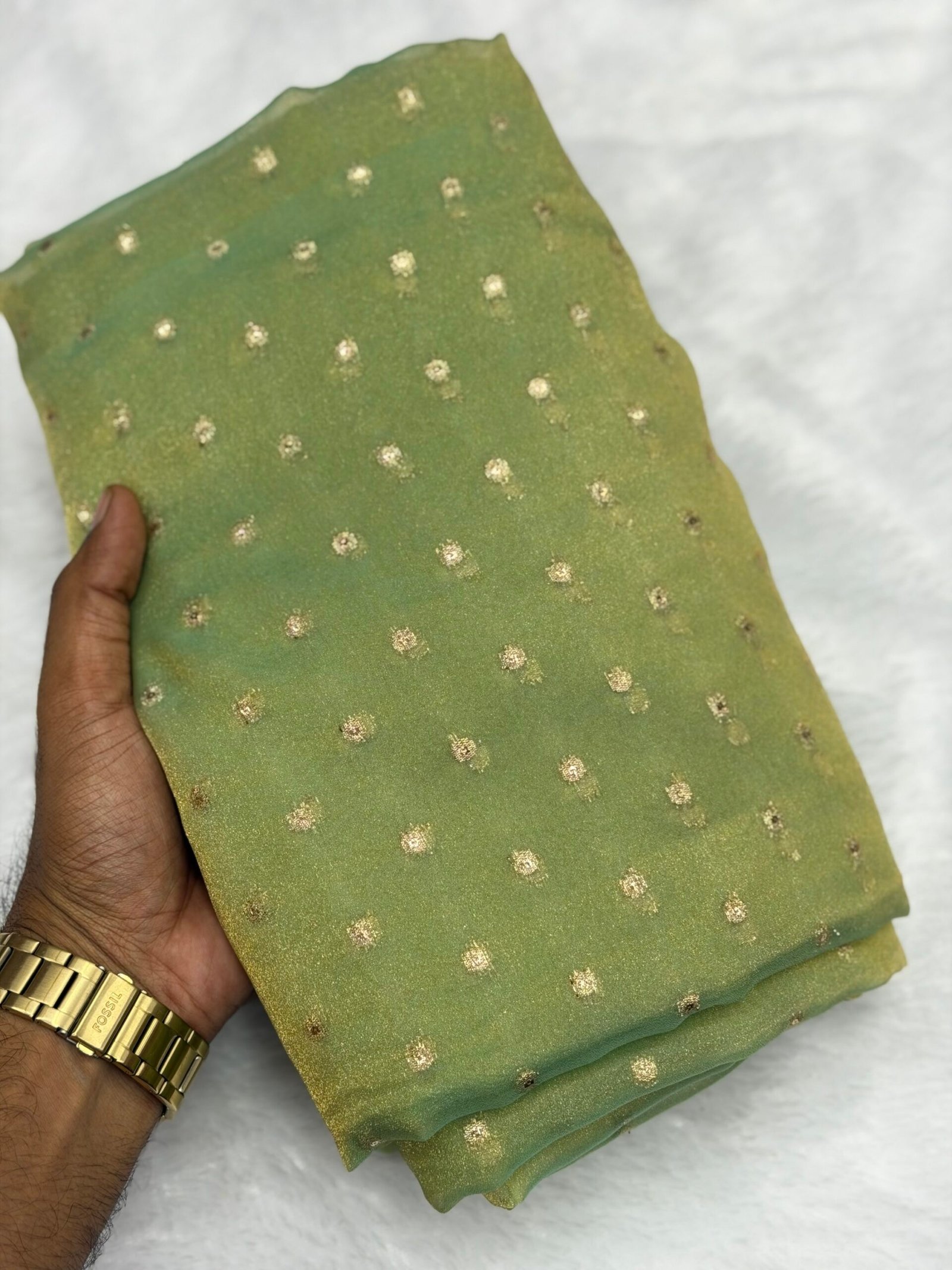 Add a touch of timeless elegance to your wardrobe with our NC Moss Butti Silk Saree, designed for effortless grace and everyday sophistication. Crafted from soft and flowy moss silk, this saree features delicate butti patterns that enhance its classic charm while keeping it lightweight and comfortable to wear.