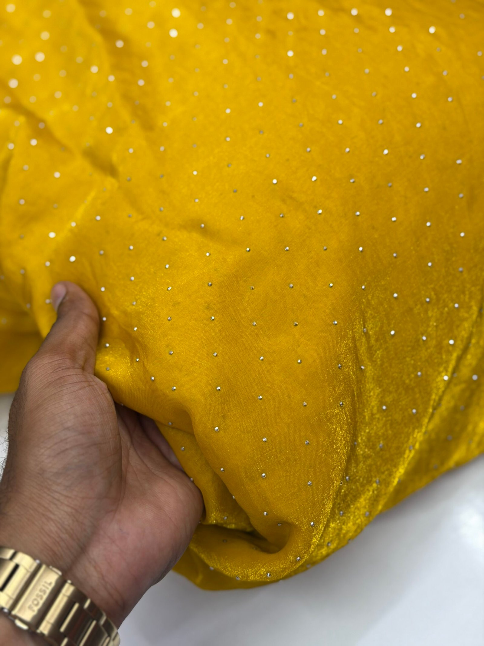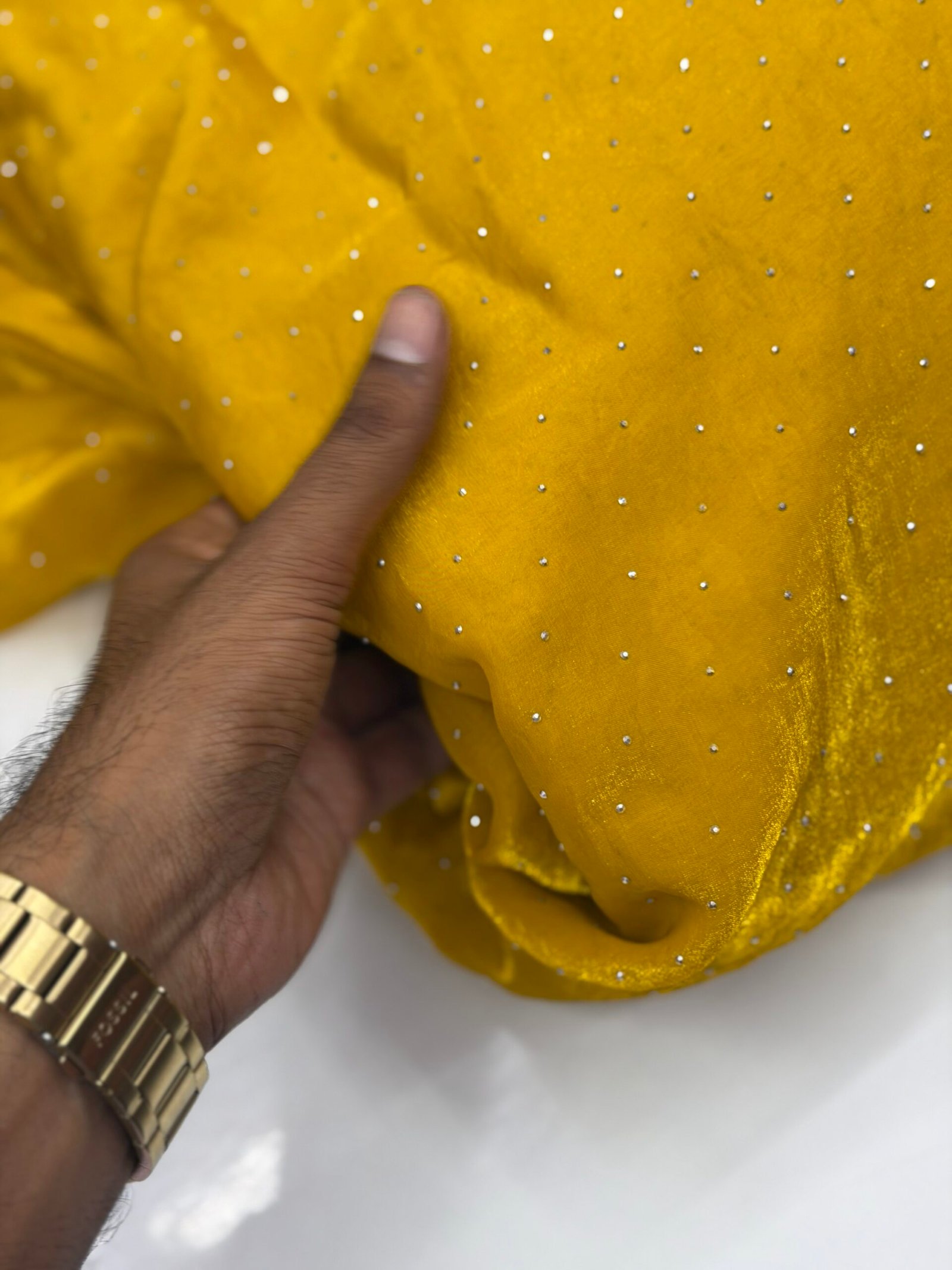 Add a touch of elegance to your creations with our beautiful Space Silk Sugar Beads fabric. The soft silk texture combined with the stylish sugar bead pattern gives a rich and trendy look, perfect for designer outfits, blouses, gowns, kurtis, and boutique collections.